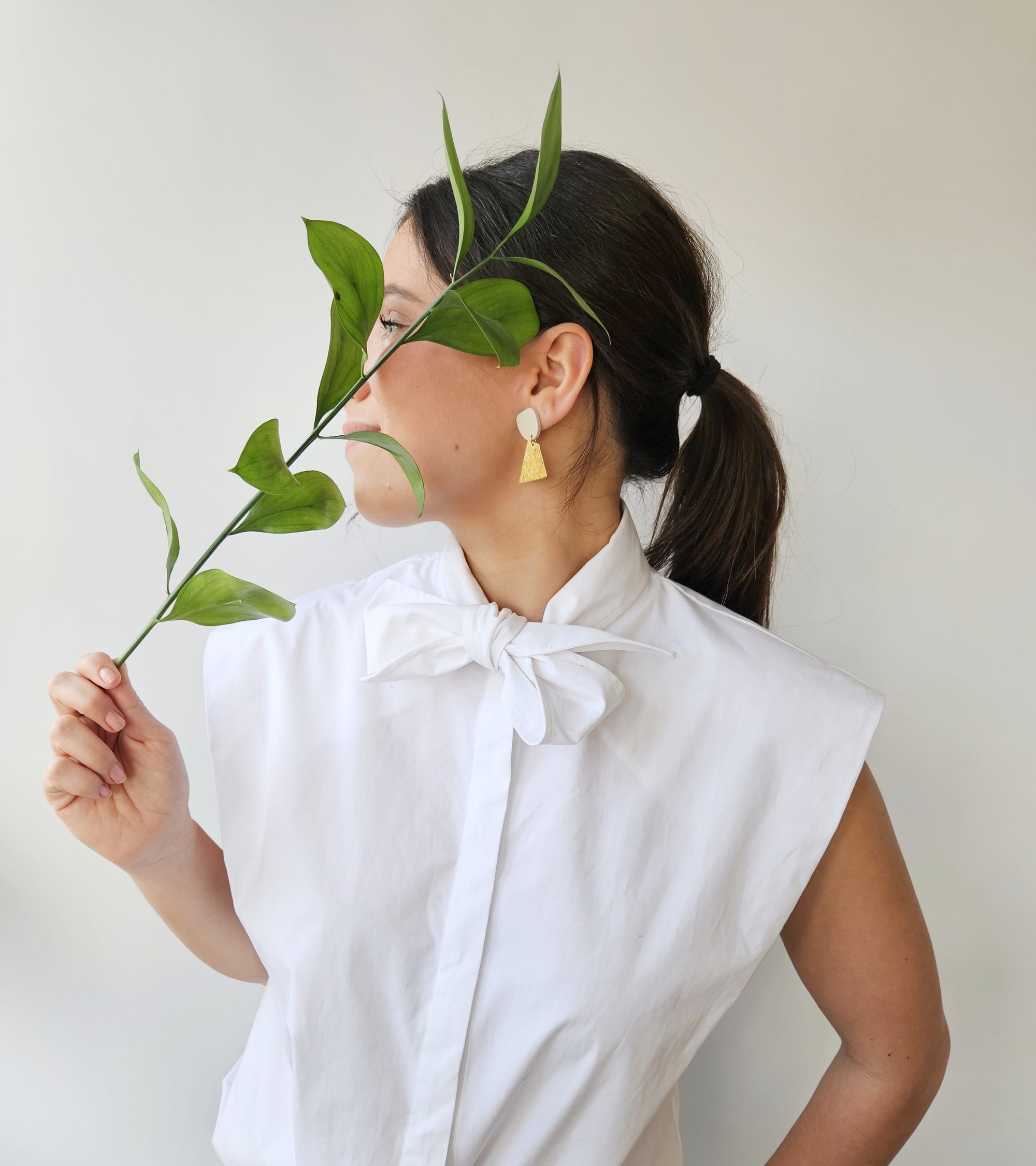 Los pendientes GIULIA están compuestos por una pieza de color en acrílico y una pieza geométrica de latón. Muy ligeros. Sus medidas son 5x2 cm. Cierre a presión de latón bañado en oro, libre de níquel y plomo