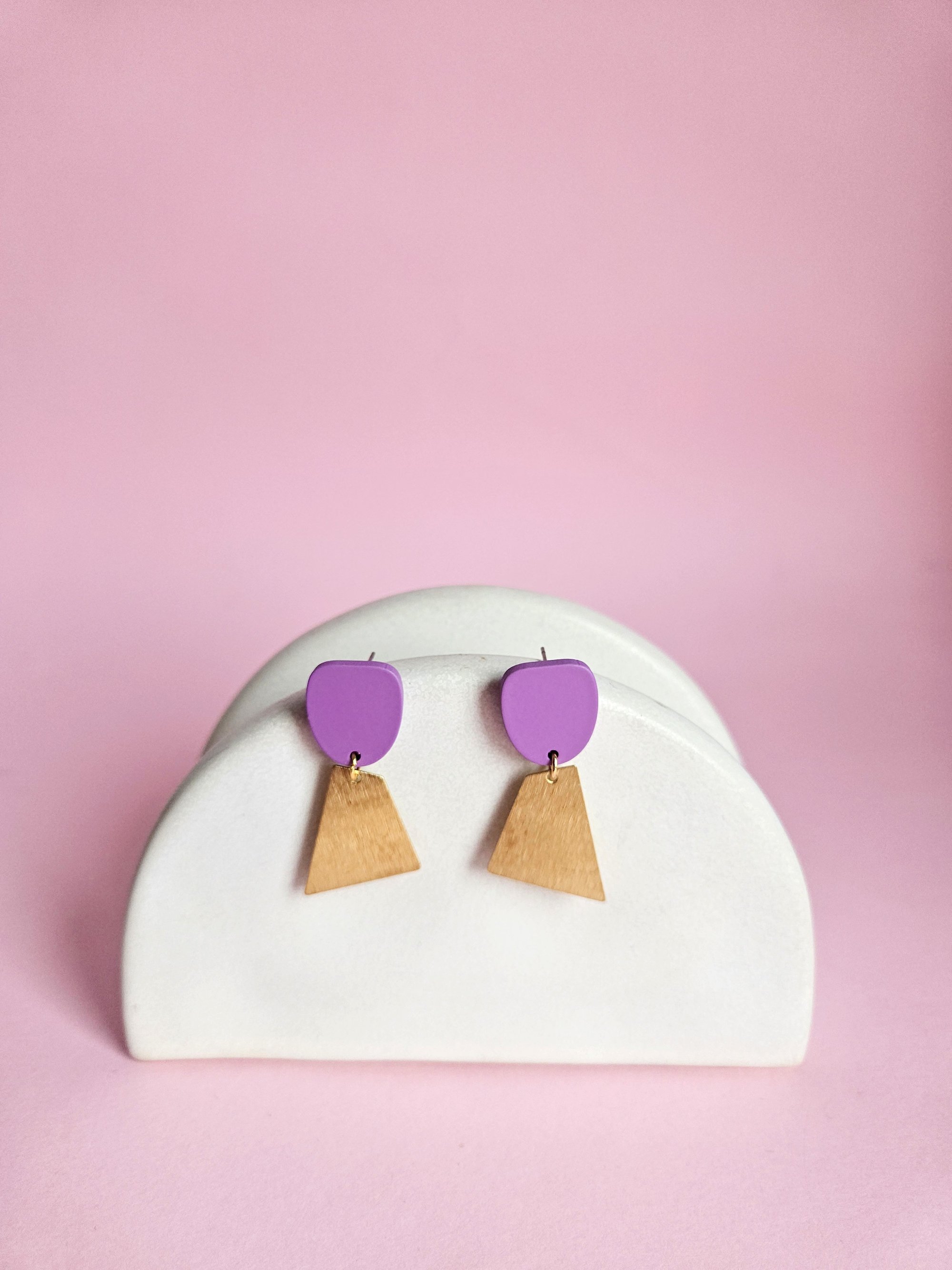 Los pendientes GIULIA están compuestos por una pieza de color en acrílico y una pieza geométrica de latón. Muy ligeros. Sus medidas son 5x2 cm. Cierre a presión de latón bañado en oro, libre de níquel y plomo